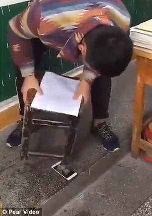 Video ghi lại cảnh cậu học sinh tự tay đập vỡ điện thoại của mình ngay trong lớp học.