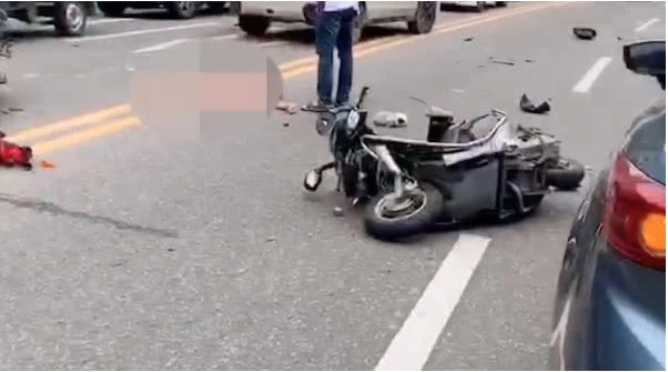 Chiếc xe máy bị hư hỏng nghiêm trọng.