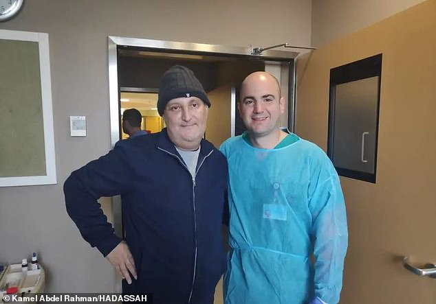 Kamel Abdel Rahman (trái) và bác sĩ phẫu thuật Samuel Moscovici tại Trung tâm y tế Hadassah ở Đông Jerusalem.