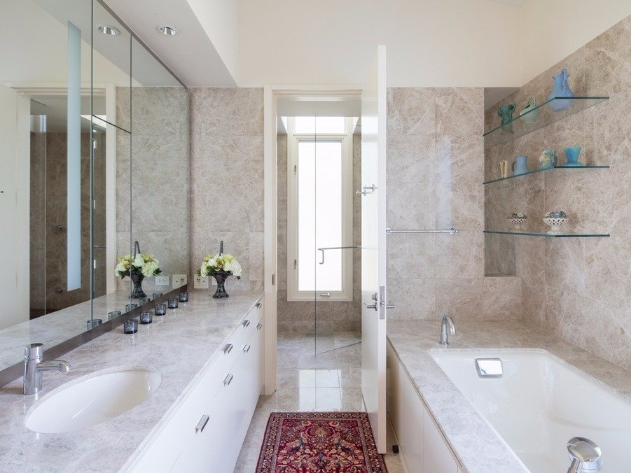 Hai phòng tắm rộng rãi với đầy đủ các thiết bị hiện đại, các tủ quần áo lớn. Nó còn được chia ra thành nhiều khu vực riệng biệt.