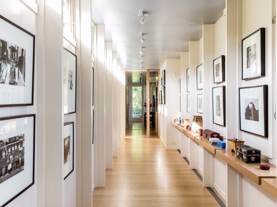 Toàn bộ hành lang được trang trí bằng những bức ảnh gia đình và một bộ sưu tập nghệ thuật phong phú.