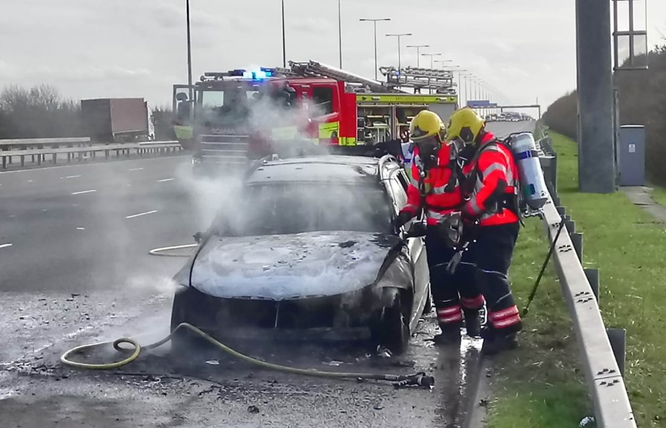 Ricky Fox, 34 tuổi, và vợ Jemma, 28 tuổi, đã dừng xe trên làn khẩn cấp khi họ cảm thấy có khói thoát ra từ động cơ chiếc xe BMW 3 Series.