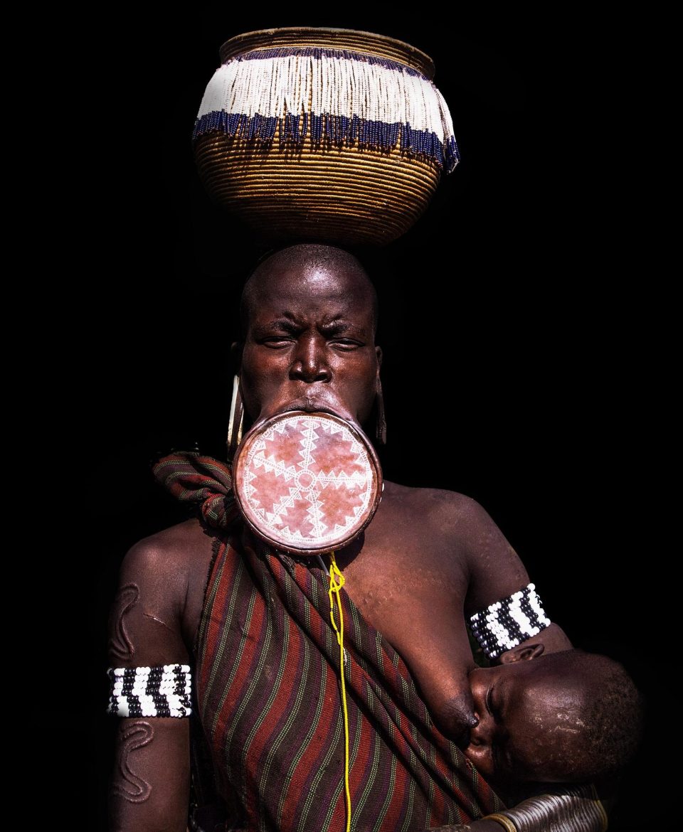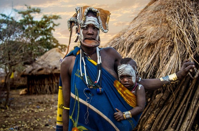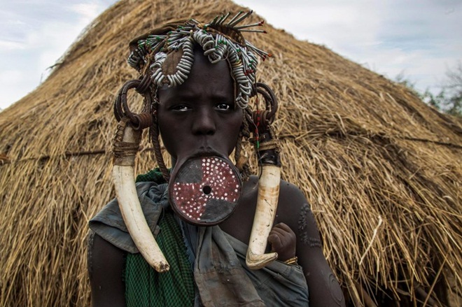 Việc lồng đĩa vào môi dưới là một biểu tượng của vẻ đẹp và thể hiện đẳng cấp xã hội của người phụ nữ trong bộ tộc.