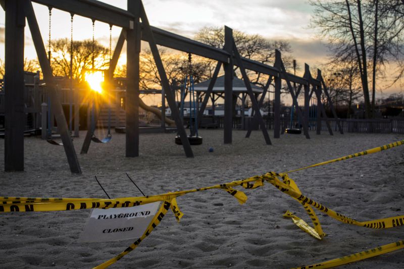 Một sân chơi tại bãi biển Compo ở Westport đóng cửa do dịch bệnh lan rộng. Ảnh: New York Times
