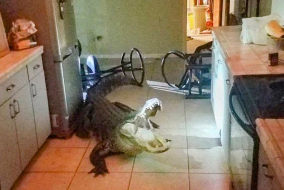 Đang ngủ ngon tại nhà riêng ở Clearwater, bang Florida, Mỹ thì bà Mary Wischhusen, 77 tuổi, bị đánh thức vào lúc 3h sáng 24/5 bởi tiếng động lớn trong nhà bếp. Nghĩ rằng có trộm đột nhập, bà Mary mon men đi xuống cầu thang để kiểm tra nhưng không ngờ “tên trộm” đó lại là một con cá sấu khổng lồ dài khoảng 3,3 m.