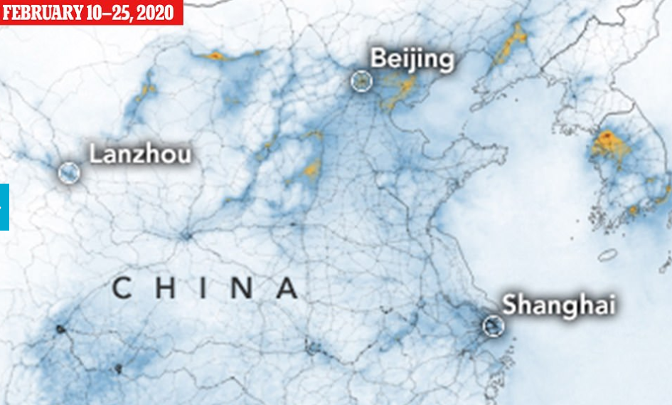 Trong ba tuần đầu tiên của tháng 1, nồng độ nitơ dioxide ở Bắc Kinh và Thượng Hải vẫn ở mức cao. Thế nhưng, bản đồ tóm lược tình hình trong ba tuần cuối tháng 2 lại cho thấy kết quả đáng kinh ngạc: hầu như không còn khí nitơ dioxide gây ô nhiễm tại các khu vực này. Đây là thành quả bất ngờ của đất nước tỷ dân sau quãng thời gian áp dụng lệnh cách ly và hạn chế di chuyển tại tỉnh Hồ Bắc, đồng thời đóng cửa các nhà máy sản xuất để đề phòng lây nhiễm virus corona. Chính vì thế, địa phương có lần “lột xác” ngoạn mục nhất chính là thành phố Vũ Hán, trung tâm bùng phát dịch Covid-19 ở Trung Quốc.