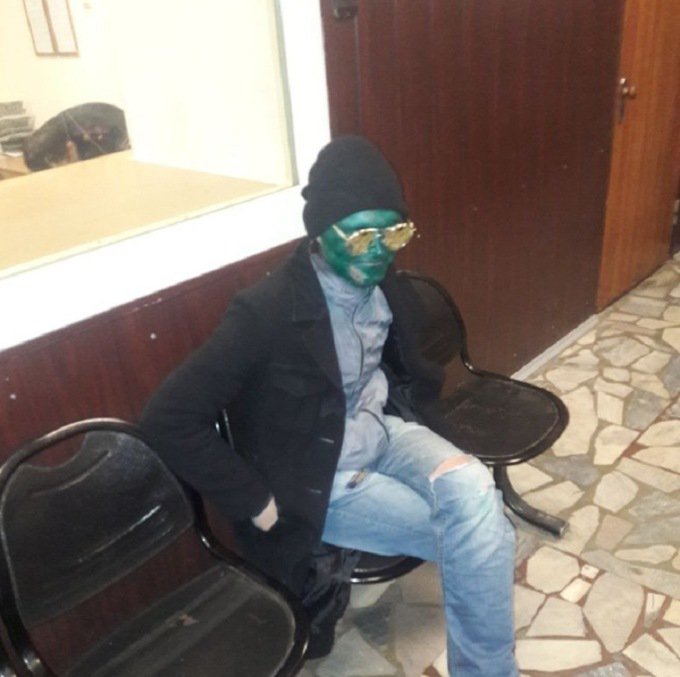 Tên trộm mặt xanh trông như một quái vật ngoài hành tinh. Ảnh: Russian Ministry of Internal Affairs