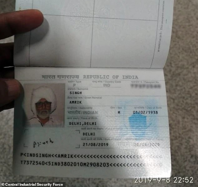 Jayesh Patel, 32 tuổi, đang ngồi xe lăn thì bị lực lượng an ninh chặn lại tại sân bay New Delhi (Ấn Độ). Thanh niên này khi đó sử dụng hộ chiếu mang tên Amrik Singh và ngày sinh ngày 1/2/1938 và ngụy trang thành một ông già bằng cách nhuộm râu trắng, đeo kính và khăn xếp.