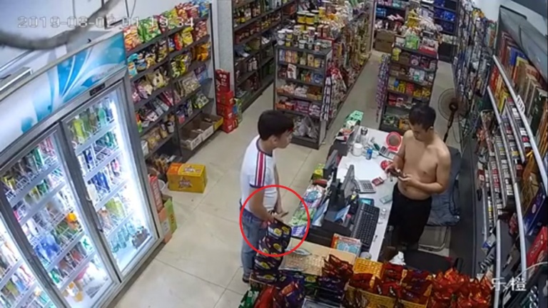 Khoảng 1h sáng 2/8, một nam thanh niên mặc áo phông trắng bước vào một cửa hàng tiện lợi ở Trung Quốc hỏi mua bật lửa. Chủ cửa hàng, người đàn ông không mặc áo yêu cầu anh ta trả tiền cho chiếc bật lửa mà anh ta muốn mua, trong khi mắt vẫn đang chăm chú nhìn vào chiếc điện thoại trên tay.