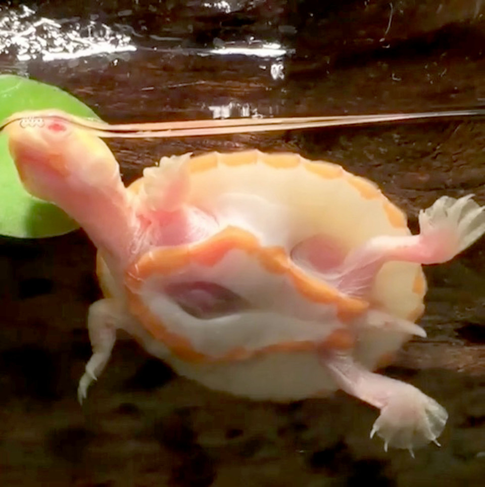 Con rùa nhỏ này vừa mắc phải chứng bạch tạng lại vừa có trái tim đập bên ngoài lồng ngực.