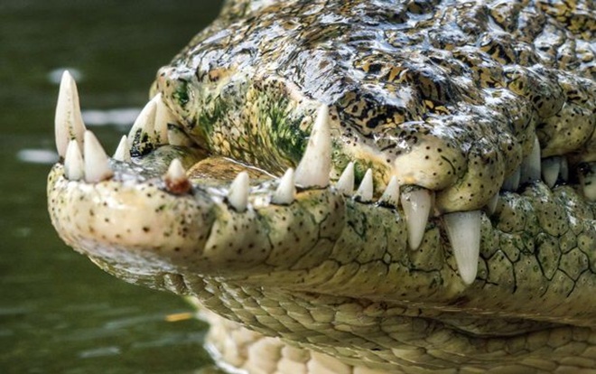 Cá sấu với nụ cười biến dạng. Ảnh: Express