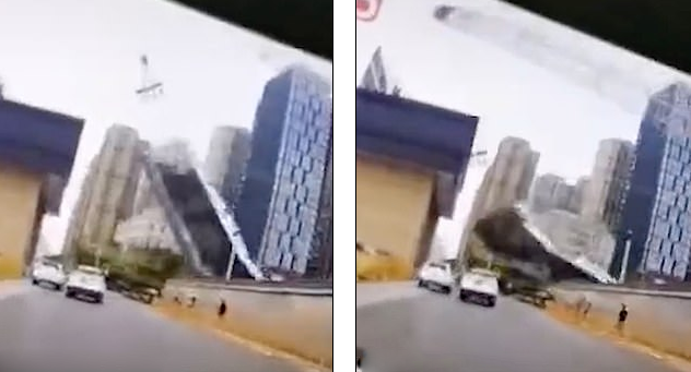 Vụ việc kinh hoàng xảy ra lúc 9h30 sáng ngày 9/6 tại công trường xây dựng dự án trung tâm thương mại Wuhan Yangtze, vừa khởi công được 2 tháng ở thành phố Vũ Hán, tỉnh Hồ Bắc, Trung Quốc. Trong lúc nâng khung thép xây nhà cao tầng, cần cẩu công trình đột nhiên đổ ầm xuống đường cái, đè bẹp hai chiếc ô tô đỗ ven đường.