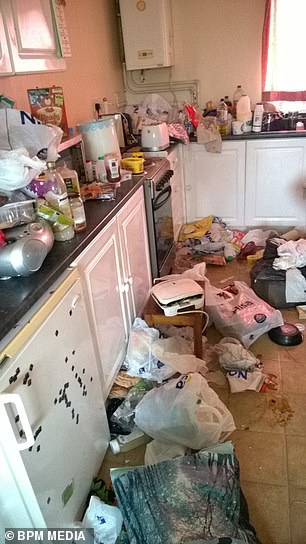 Không chỉ có phân và ruồi khắp nơi, ngôi nhà bẩn thỉu này còn hôi hám. Thức ăn mốc meo, thối rữa trong tủ lạnh. Hai mẹ con cũng không có quần áo sạch.