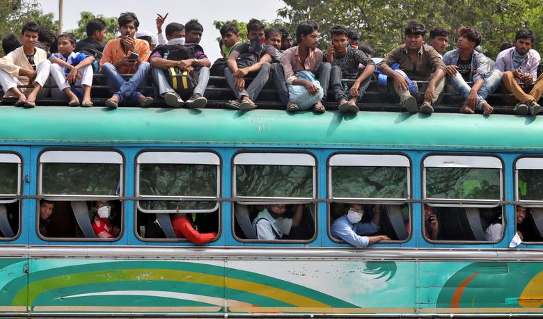 Một xe buýt chật kín người di chuyển về quê trước khi lệnh phong tỏa bắt đầu ở thành phố Kolkata.