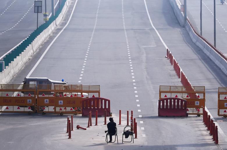 Một người đàn ông ngồi ở khu vực hàng rào biên giới thành phố New Delhi hôm 23/3.