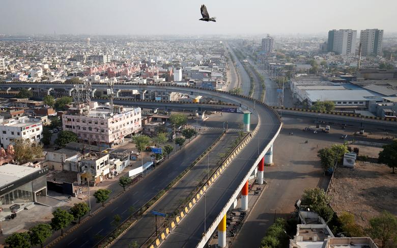Đường phố vắng bóng người và xe cộ trong giờ giới nghiêm ở thành phố Ahmedabad hôm 22/3.