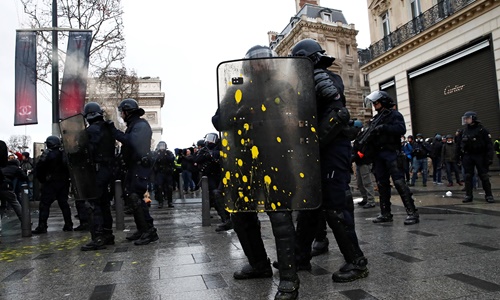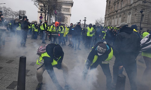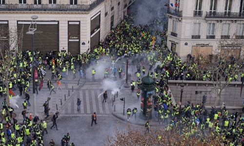 Cảnh sát đã phải bắn hơi cay để đẩy lùi hàng trăm người biểu tình xung quanh các cửa hàng trên đại lộ Champs-Elysees và Khải Hoàn Môn. Nhà chức trách ước tính có khoảng 1.500 người tập trung trong khu vực này. Thủ tướng Pháp Edouard Philippe cho biết đã có 481 người bị bắt khi tham gia biểu tình.