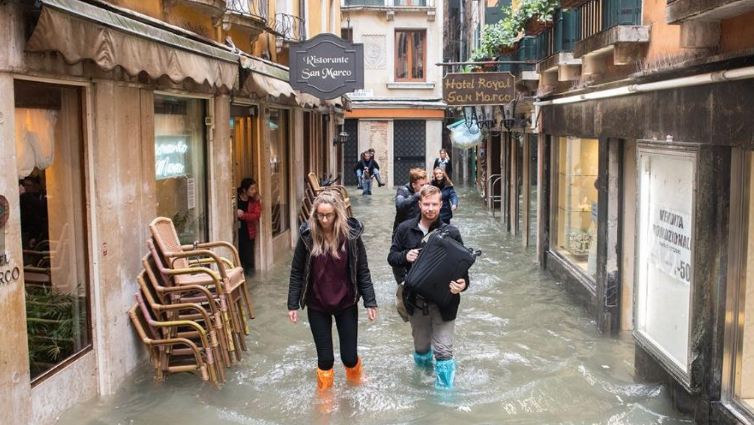 Những con đường ở thành phố Venice giờ đây đã trở thành sông, ảnh hưởng lớn tới đời sống sinh hoạt của người dân.