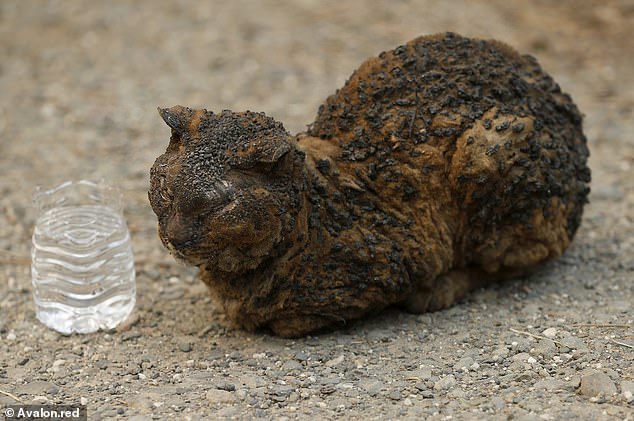 Chú mèo bị chết cháy đến mức thân thể khô cứng. Ảnh: Avalon.red