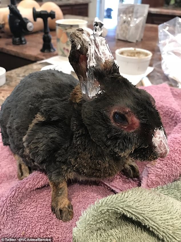 Một chú thỏ khác bị bỏng nặng ở phần tai và mắt. Ảnh: Twitter