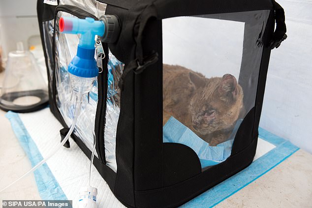 Chú mèo này được chăm sóc đặc biệt do bị bỏng quá nặng. Ảnh: PA Images