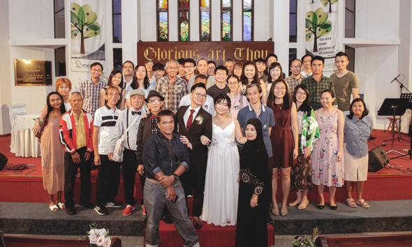 Vì ngân sách hạn hẹp nên khách mời của Peng Cheng Yu và Abraham Yeo xung phong kiêm luôn chức phục vụ bàn và nhiếp ảnh gia trong đám cưới. Để tiết kiệm tối đa, cô dâu đặt mua váy cưới trên mạng chứ không ghé qua cửa hàng. Dù đám cưới có giản dị đơn sơ, song nụ cười hạnh phúc của mọi người chính là điều đáng quý nhất.