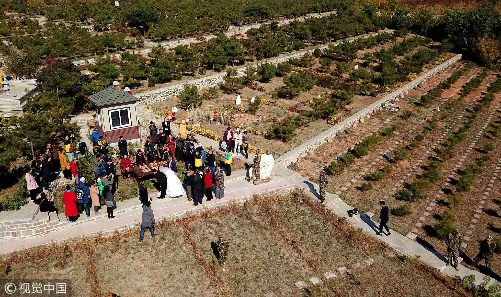 Chú rể Cao Mingbao và cô dâu Jiang Jinbo hôm 21/10 tổ chức hôn lễ ở một nghĩa trang thành phố An Sơn , tỉnh Liêu Ninh, phía đông bắc Trung Quốc. Tại quốc gia đông dân nhất thế giới, việc tham dự một đám tang được coi là điều tối kỵ đối với những cặp đôi mới cưới nhưng lý do nào khiến anh Cao và chị Jiang lại chọn nghĩa trang là nơi tổ chức hôn lễ. Phía sau sự lựa chọn đó thật sự là cả một câu chuyện cảm động.