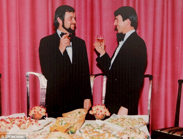 Cặp đôi đang “làm trò” cho khách vào những năm 1970 (ảnh trái). Ảnh phải là Lễ kỉ niệm 25 năm quen biết