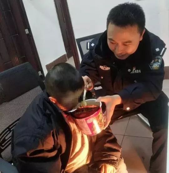 Cậu bé tội nghiệp được cảnh sát ủ ấm, ru ngủ trong lúc chờ người nhà tới đón.