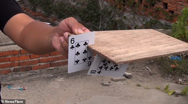 Trong video, Wang tung các lá bài với độ chính xác cao vào trúng quả dưa hấu. Thật ngạc nhiên khi mỗi lá bài mà cậu bé tung về phía quả dưa đều nằm sâu vào phần thịt của loại trái cây này.