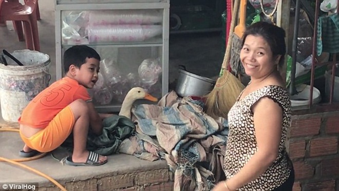 Khoảnh khắc cậu bé đáng yêu đáp trả lại, thậm chí có lúc hất tay người phụ nữ, rồi quay lại vuốt ve con vịt đã khiến nhiều độc giả xúc động.