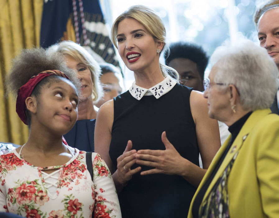 Là người năng động và có tài ngoại giao, Ivanaka từng xuất hiện bên cạnh cha trong nhiều sự kiện quan trọng và gặp gỡ nhiều lãnh đạo cấp cao trên thế giới. Mỗi lần xuất hiện, gu thời trang tinh tế và nổi bật của con gái tổng thống luôn được chú ý. Trong ảnh, Ivanka ngồi cạnh Thủ tướng Canada tại Hội nghị “Những người phụ nữ quyền lực nhất thế giới”.