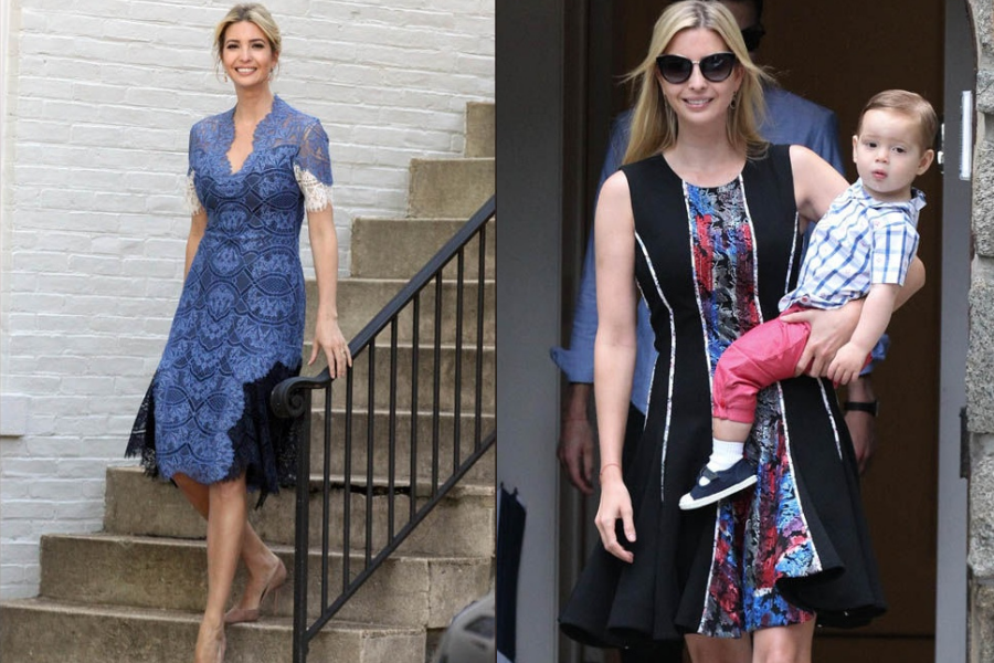 Nét thanh lịch, quyến rũ và sang trọng là điều dễ thấy mỗi khi Ivanka xuất hiện trước công chúng. Chiếc váy đen, điểm xuyết hoạ tiết trên cổ áo, tạo nét thanh lịch cho Ivanka.
