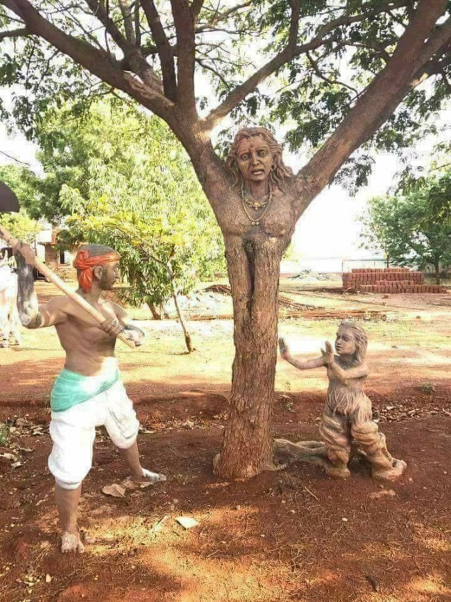 Tác phẩm điêu khắc này giống như một thông điệp về bạo lực gia đình.