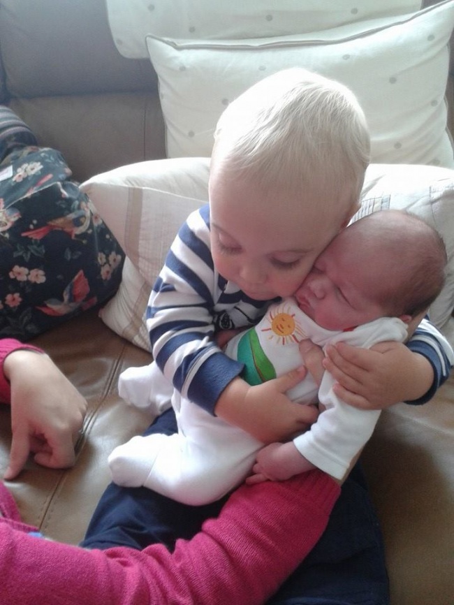 Khoảnh khắc chạm đến triệu trái tim, khi cậu bé lần đầu tiên được ôm đứa em bé bỏng mới sinh vào lòng.