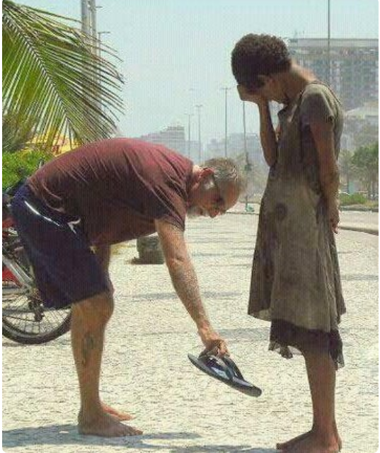 Người đàn ông này quyết định nhường giày của mình cho người có số phận kém may mắn hơn.
