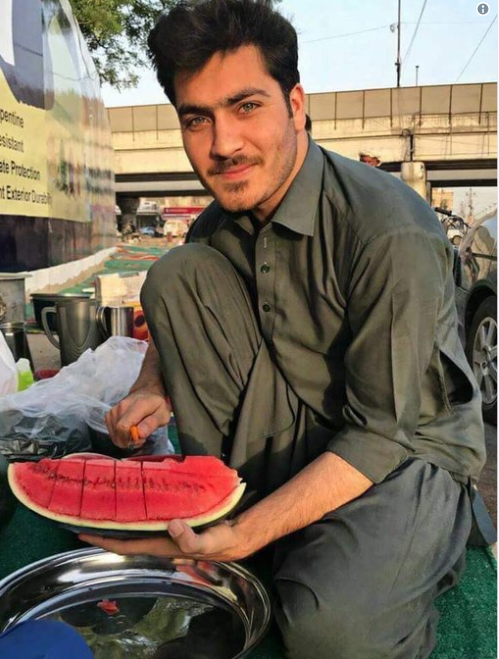 Muhammed Awais, 24 tuổi, đến từ Pakistan gần đây bỗng trở nên nổi tiếng nhờ một bức ảnh mà bạn anh chụp và đăng tải lên mạng xã hội. Trong bức ảnh, Muhammed đang ngồi cắt dưa hấu, nở nụ cười nhẹ cùng đôi mắt hút hồn người đối diện.
