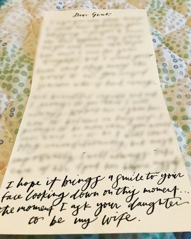 Nội dung bức thư đề cập đến việc Justin xin phép được Gino chấp nhận anh trở thành bạn đời của Meg, hy vọng ông có thể chúc phúc cho họ. “Gino đáng kính, con hy vọng ở thế giới bên kia, bố cũng đang mỉm cười, vào thời điểm con đang cầu hôn cô ấy“, Justin viết.