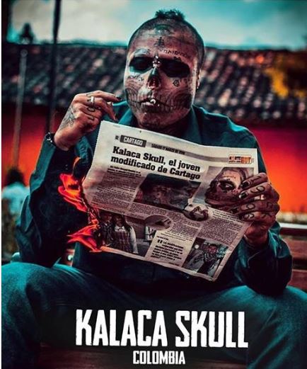 Kalaca Skull, một nghệ sĩ xăm hình 22 tuổi đến từ Colombia, đang nổi tiếng trên các mặt báo khắp Nam Mỹ khi anh đã trải qua nhiều cuộc phẫu thuật “kinh dị” để biến khuôn mặt mình trông giống như một hộp sọ.