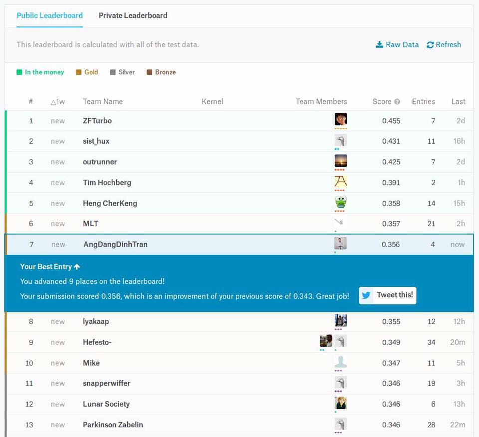 Và vào sáng nay ngày 22/11/2018, Ang đã leo lên vị trí thứ 7, chính thức đặt chân vào top 10 đáng mơ ước của cuộc thi Data Science Bowl danh giá.