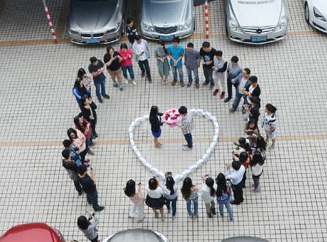 Có thể nói từ trước tới nay, Trung Quốc luôn là đất nước có những màn cầu hôn độc đáo và chịu chơi nhiều nhất. Ví như vào năm 2012, một chàng trai tại Nam Kinh đã dùng 1.999 bông hoa bằng… vàng lá với trị giá gần 9 tỷ đồng để cầu hôn bạn gái.