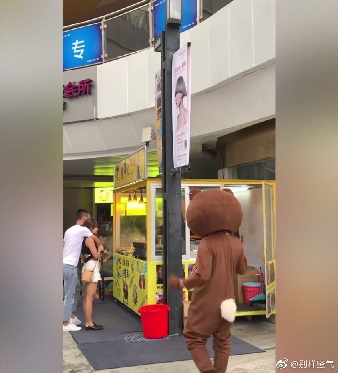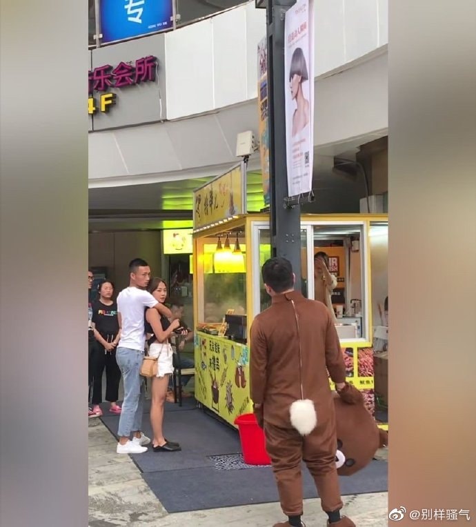Có lẽ rằng trước khi vượt hơn 400 km để đến gặp bạn gái, chàng trai đã hỏi cô vị trí mà cô đang đứng. Sau khi xác định được vị trí của người yêu, chàng trai đã mặc một bộ gấu nâu, tiến về phía người yêu với hy vọng tạo bất ngờ cho cô. Không ngờ rằng, đập vào mắt chàng trai không phải là cảnh người yêu đi chơi với một nhóm bạn mà là cảnh người yêu của mình đang “tình chàng ý thiếp”, nằm gọn trong vòng tay của một người đàn ông khác ngay trong trung tâm thương mại.