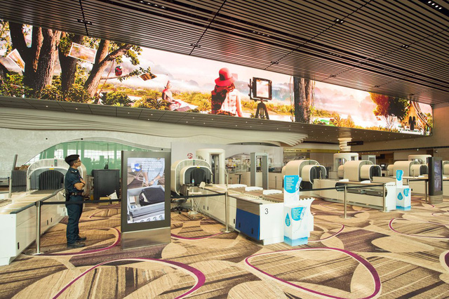 Tường 3D là một bảng đèn LED dài 70 mét được thiết kế để hành khách ngắm trong khi chờ tại điểm kiểm tra an ninh