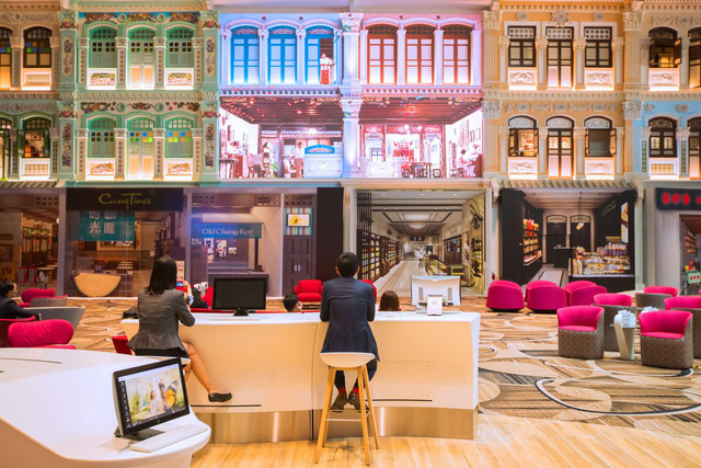 Mô hình của khu nhà Peranakan truyền thống của Singapore tại khu Di sản của sân bay