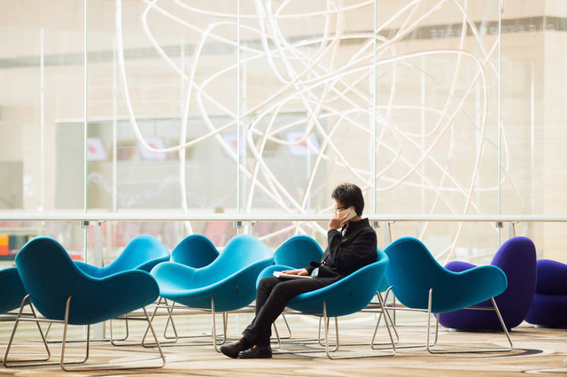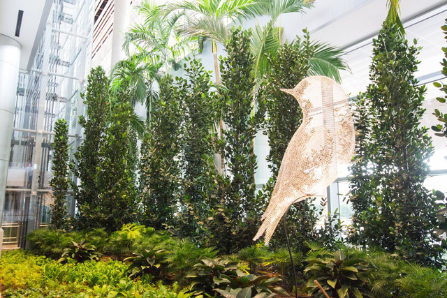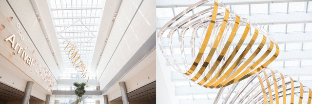 Một tác phẩm nghệ thuật mang tên “Les Oiseaux” (Chú chim) bằng thép không gỉ đặt trong khu vực phòng chờ đến