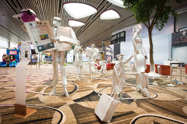 “Gia Đình Du lịch” - tác phẩm điêu khắc bằng nhôm của nghệ sĩ Thụy Sĩ Kurt Metzler, được bày ở khu vực khởi hành quá cảnh
