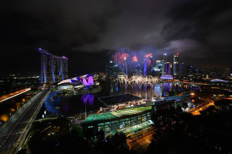 Màn hiệu ứng ánh sáng và bắn pháo hoa lung linh ở Singapore.