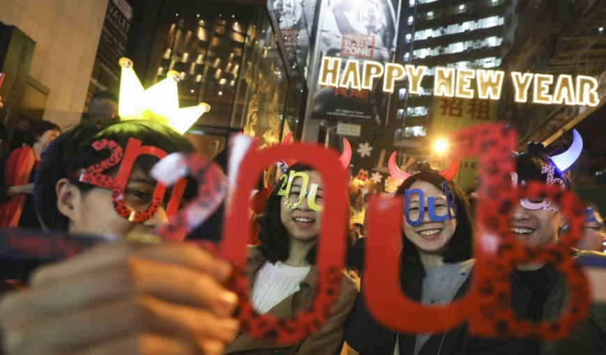 Giới trẻ tập trung ở bến cảng Victoria và khu phố đêm Lan Quế Phường, một trong những địa điểm đón năm mới yêu thích của người dân và du khách khi đến Hong Kong, để nói lời tạm biệt năm cũ.
