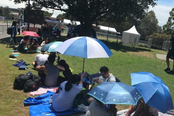 Tại Sydney, người dân cắm trại trước Phòng Trưng Bày Nghệ Thuật, Sydney từ tối hôm qua, cố gắng kiếm một chỗ đứng đẹp để tham gia lễ giao thừa.