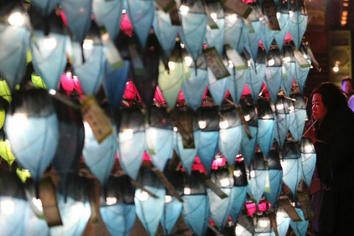 Người phụ nữ đến đền Jogyesa ở thủ đô Seoul để cầu nguyện một năm mới an lành.